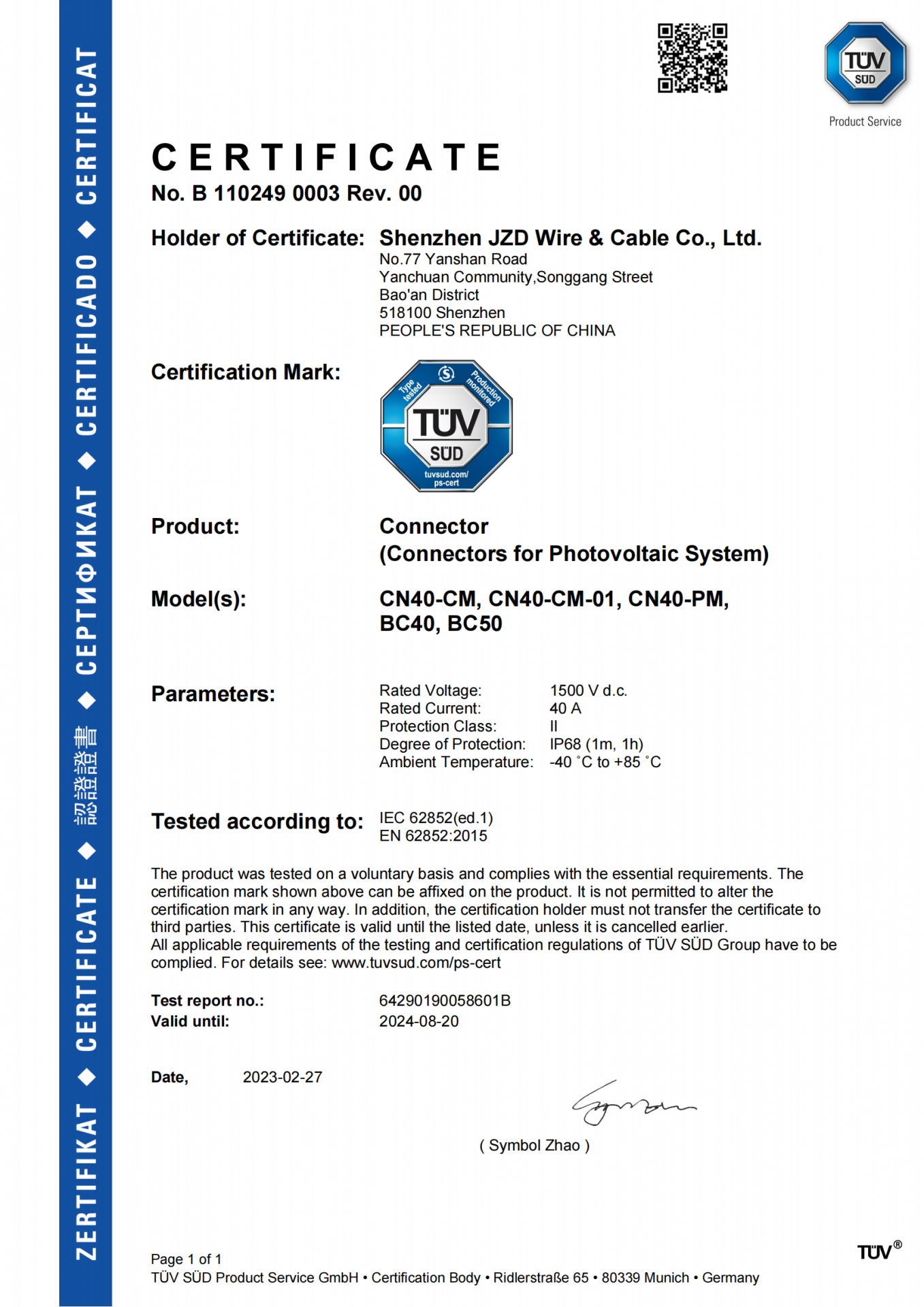 TUV-MC4 資質證書